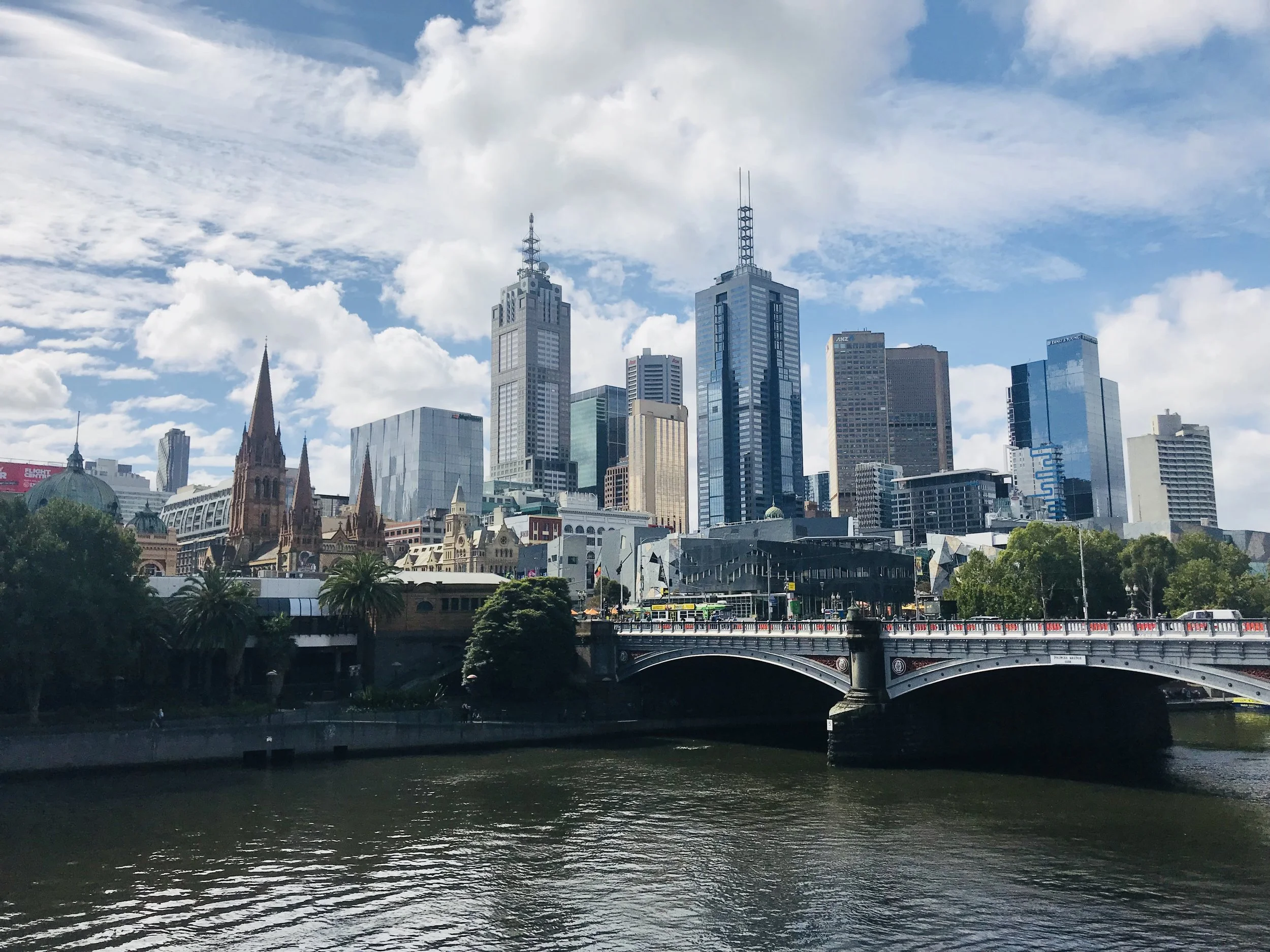 Melbourne skyline as seen from the Victorian Arts Centre.